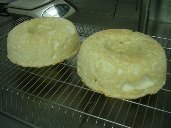 今天輪到我考試了,班上有一半的人今天要模擬考,我是下午場,上午場的同學抽到的題目是巧克力戚楓捲和奶油大理石蛋糕;我們下午場的則是蒸烤雞蛋牛奶布丁和香草天使蛋糕。 考試的氣氛還好,下午場的先考學科,再來抽籤(不過其實今天也只有這兩種籤),聽到要做天使時我差點昏倒,不是因為天使很難(對我來說每一樣都很難